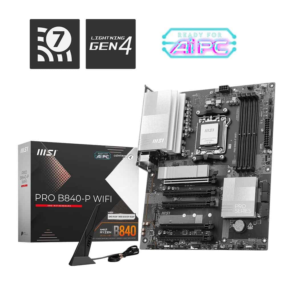 De PRO B840-P WIFI is een designgericht ATX-moederbord. Het is gebouwd met een 12 Duet Rail-voedingssysteem en de nieuwste AMD B840-chipset die AMD Ryzen 9000 / 8000 / 7000-processors ondersteunt. Met PCIe 4.0, 2.5G LAN, Wi-Fi 7, DDR5, Frozr-ontwerp en de nieuwste hardware biedt het een breed scala aan gebruiksmogelijkheden.
