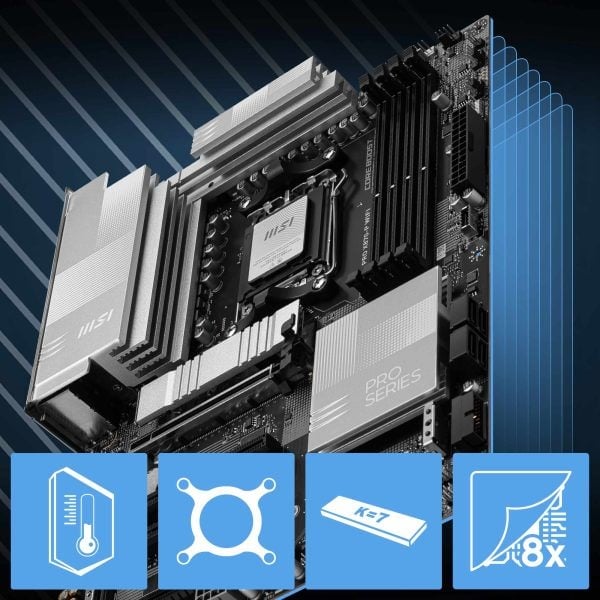 De PRO X870-P WIFI is een op design gericht ATX-moederbord met een 14 Duet Rail-voedingssysteem. Met de nieuwste AMD X870-chipset ondersteunt het AMD Ryzen 9000 / 8000 / 7000 desktopprocessors. Dankzij PCIe 5.0, 5G LAN, Wi-Fi 7, DDR5 en het Frozr-ontwerp biedt het een breed platform waarop je de nieuwste componenten comfortabel kunt inzetten.