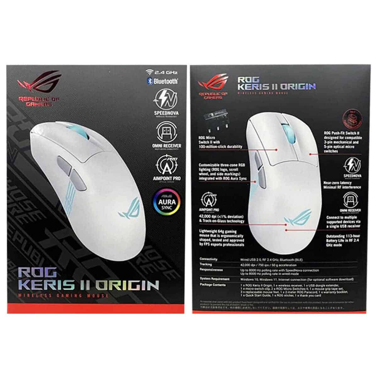 ASUS ROG Keris II Origin Wit 8K Hz AimPoint Pro Sensor RGB Draadloze Gaming Muis