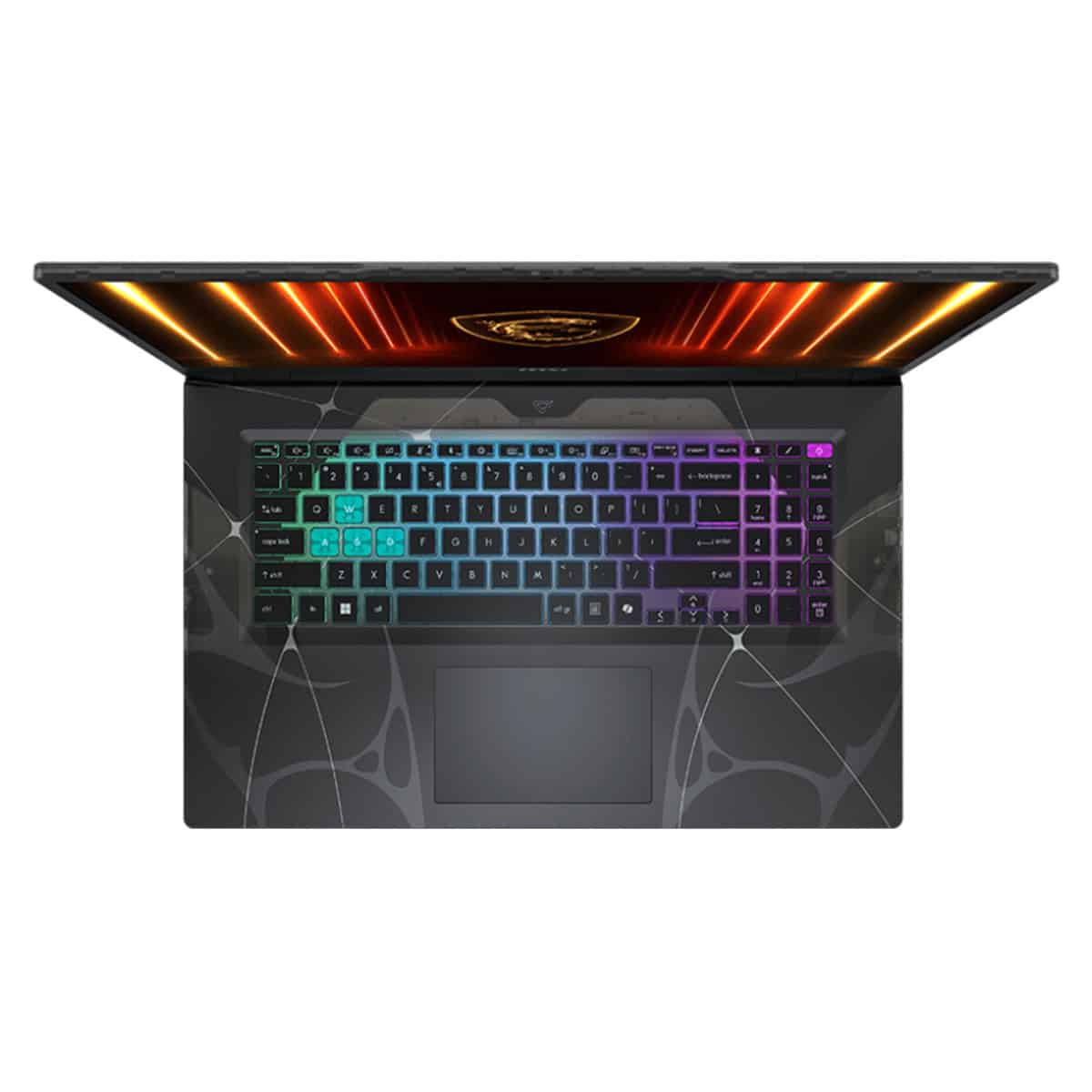 Complexe structuren en in het oog springende transparante materialen, een halftransparante toetsenbordzone en totemachtige prints op het exoskelet ontketenen een baanbrekende revolutie — de grens tussen mens en machine vervaagt.