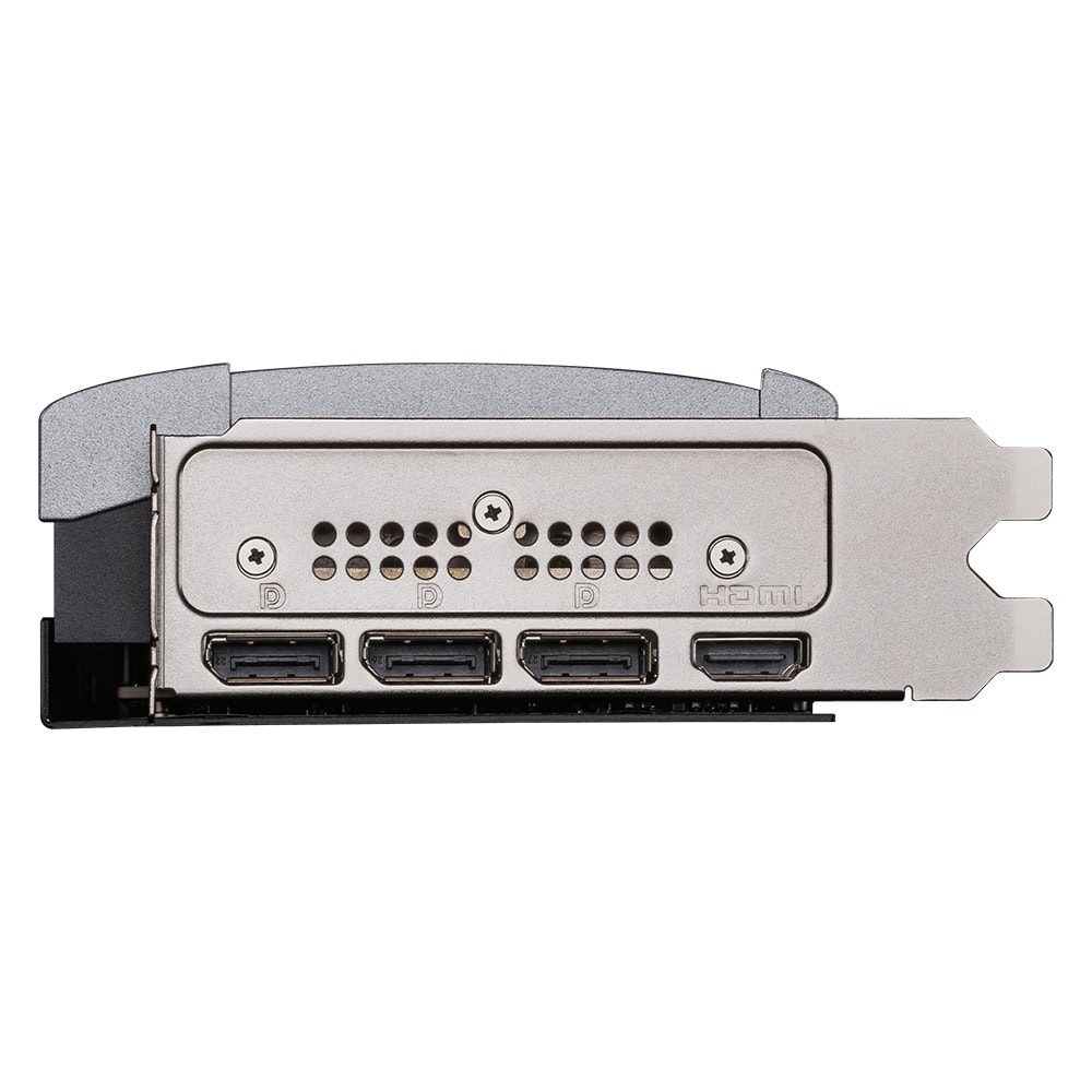 De stevige metalen backplate versterkt de structuur van de grafische kaart en voorkomt warmteophoping dankzij ventilatieopeningen.